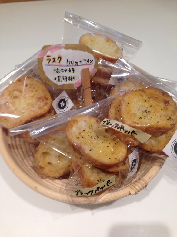 本日からレジ周りのtakeout商品に『ラスク ¥120』が仲間入りしました!自家製フランスパンのおやつは、お砂糖と黒胡椒の二種類の味でご用意しています☺︎ぜひお試しくださいませ。