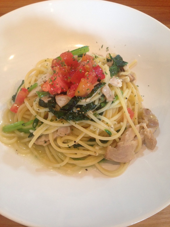 本日の日替わりパスタは『チキンとほうれん草の塩ガーリックパスタ ¥830』です。
