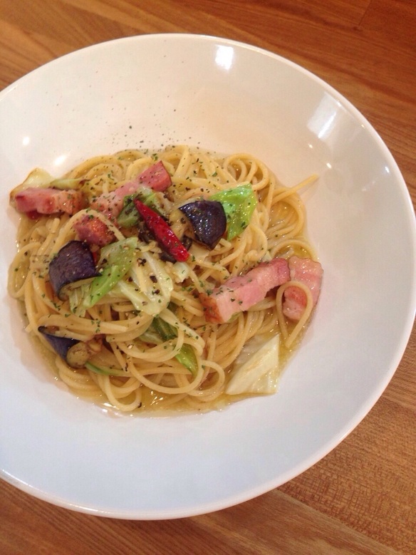 本日のランチパスタは『茄子とベーコンのペペロンチーノ ¥830』です。