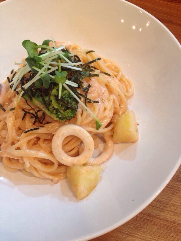 本日の日替わりパスタは『イカの明太クリームパスタ ¥830』です。