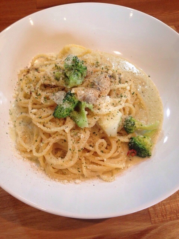 本日の日替わりパスタは『あさりとお野菜のクリームパスタ ¥830』です。