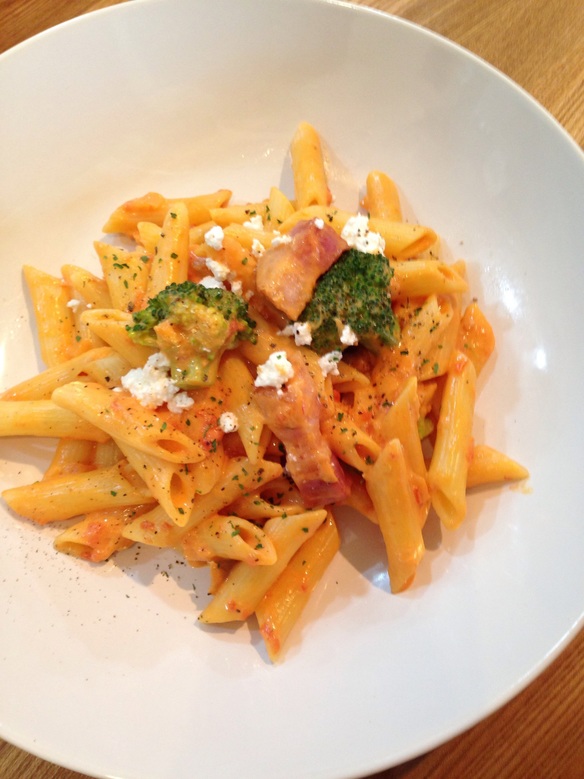 さて、本日の日替わりパスタは『トマトチーズペンネ ¥830』です。ソースはチーズのコクとトマトの酸味、ツナの旨味が溶け込んでいます。ベーコンとブロッコリー、ペンネにしっかり絡み食べ応えの充分な一皿です!