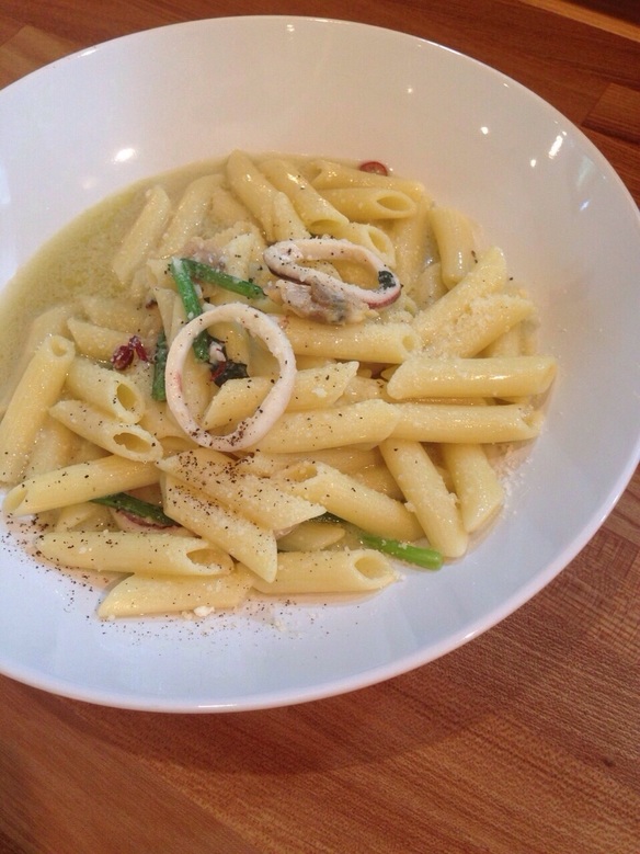 本日は『イカとあさりのクリームペンネ ¥830』を日替わりランチパスタでご用意しております。ぜひお試しください。
