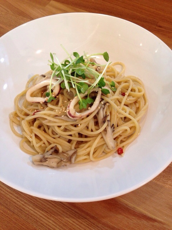 さて、今日の日替わりパスタですが、『イカと舞茸の柚子胡椒パスタ ¥830』です。