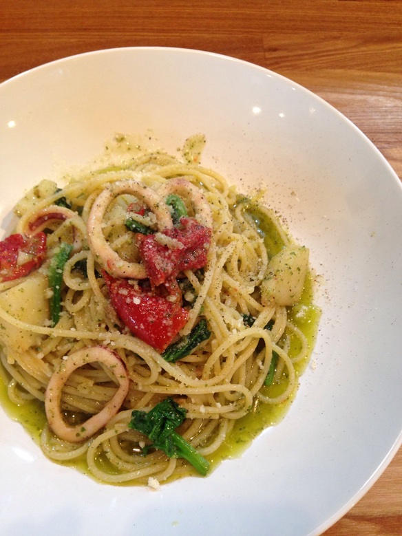 『ポテトとイカのジェノベーゼパスタ ¥830』久々にランチでバジルソースのパスタをご用意しました!