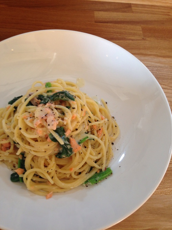 『サーモンとほうれん草のクリームパスタ』