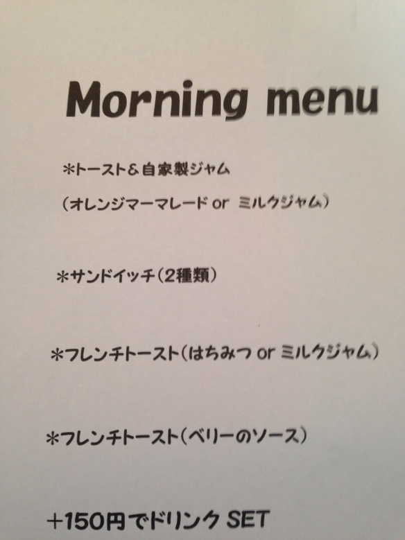 9:00〜11:00はモーニングメニューとして食パンを使った軽食をご用意しております。➕¥150でドリンクが付くお得なセットもございます。