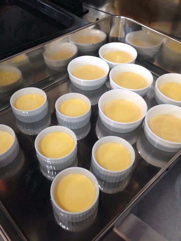 写真は今朝焼いたクレームブリュレです。オーブンから出すタイミングを確認するのに容器を少し揺らすのですが、中央がプルンプルン♪と。