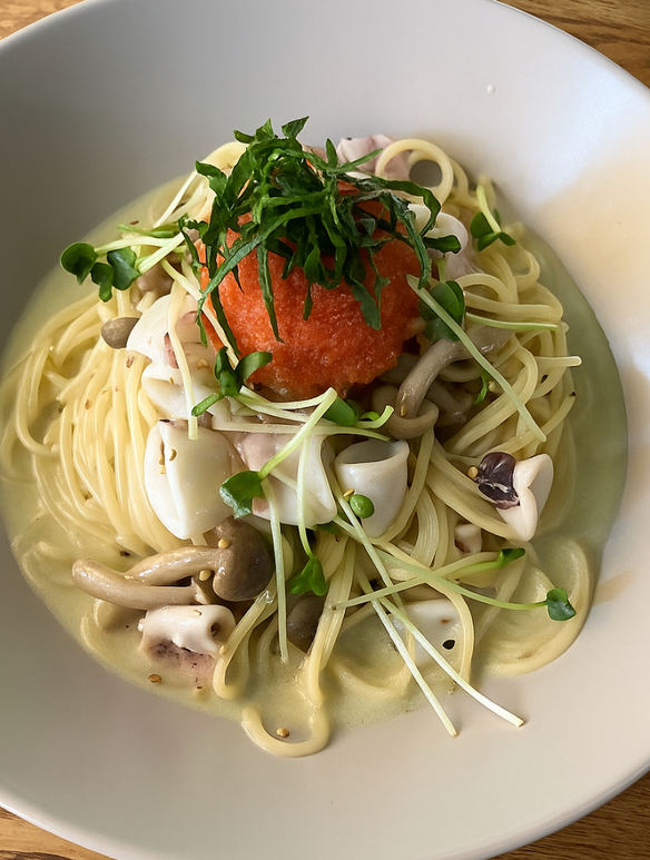 本日、7(日)の日替りランチパスタは、冷製明太クリームパスタです😋