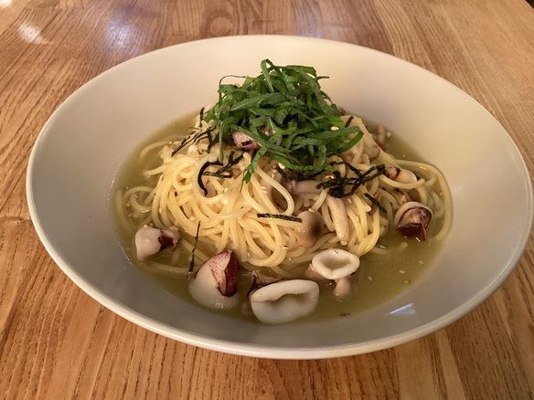 本日、9日(金)の日替りランチパスタは、ヤリイカと大葉の和風パスタです。