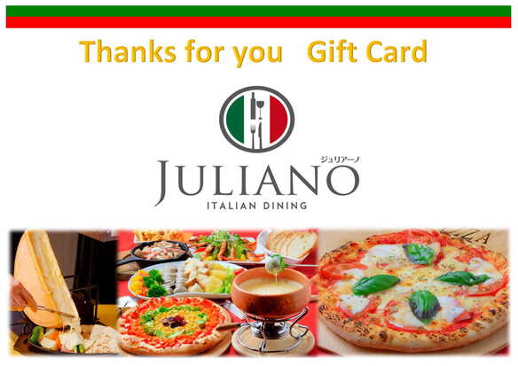 8800円(税込)お祝いごとは、ジュリアーノにおまかせ! いろんなお祝いに対応しています。 「周年記念」「お誕生日」「送別記念」「歓迎記念」「入学記念」「卒業記念」「卒団記念」「入団記念」などなど 大切な記念のお祝いを心に残る思い出にぜひ、ご活用下さい。 大切なお祝いの時間が盛り上がること間違いなし。 ★ランチコース2480円以上のコース(牛フィレランチ・ラクレットランチ・ローストビーフランチの3種よりお選び下さい)または、ディナーシェアコース全コースを人数分、前日18時までにご予約で プレゼントさせて頂きます。 (ご注文コースをお電話または、メール、グルメサイトのご予約からお知らせ下さい。) *プレゼントは1グループに付き、1枚とさせて頂きます。 *ランチコース2000円未満の場合や、 ディナー単品アラカルトでご注文の場合、 2枚目以上ご用意する場合は、「お祝いドルチェプレート」1枚1300円で承っています。 ご注文コースと人数をお知らせ下さい。 blancbois@icloud.com