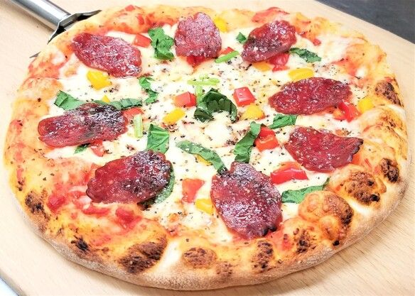 1300円★④アメリカーナのトマトソースピザ (トマトソース/パプリカ/ほうれん草/ペパロニ(サラミ)/ゴーダチーズ) もっちりした手作りの生地を石窯で一気に焼き上げたもちもちのピザです。 ★テイクアウトご注文方法★ 電話でご注文をお願いします。(受け渡しまでの時間は、通常30分) ・お電話受付時間10:45~14:00/17:00~19:00(木曜日はランチタイムのみ) ・受け取りは店頭にてお渡しします。 ・ランチ・ディナーの込み合うときは、お時間を頂く場合がありますので、ご了承下さい。 TEL 0529182367 イタリアンダイニングジュリアーノ ★「ジュリアーノ・ギフトカード」ちょっとしたお祝いなどに「eギフトチケット」メールで遅れます。 詳しくは↓ http://blancbois.favy.jp/menus/281046