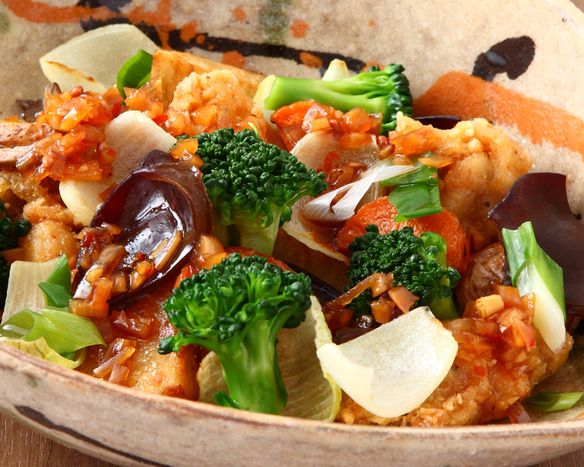 日向鶏のからあげと地場野菜のピリ辛ぽん酢
