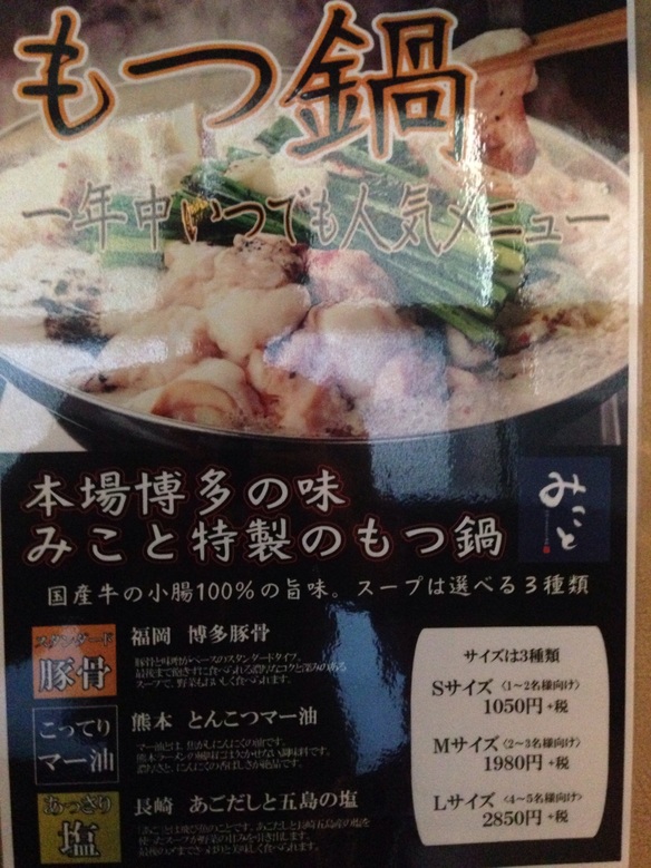 鍋と言えばもつ鍋!そしてもつ鍋と言えばみこと!