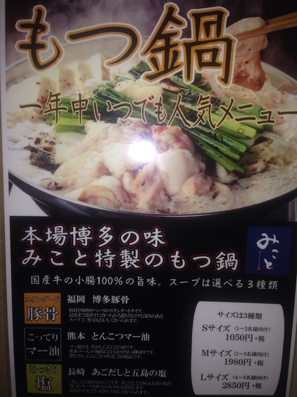 寒い時は、みことのもつ鍋で温まりましょう(*^^*)