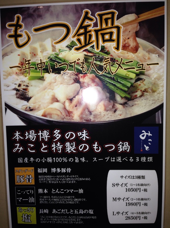 まだ残暑もあるかと思いますが、雨の日にビーチサンダルで出掛ける時はお気を付けっ!立川駅は滑るよぉ〜。今日みたいに肌寒い時は、もつ鍋かな?