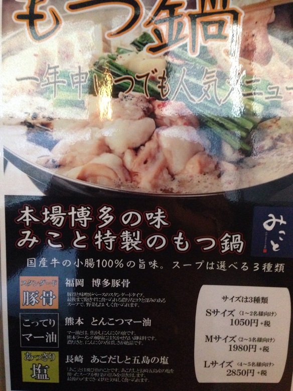 少し肌寒いなっという方。みことのもつ鍋はどうでしょう?!温まりますよ!