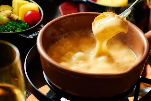 スイス直送グリュイエールチーズをふんだんに使用した本格派です 自家製のもちもちチーズパン、ポンデケージョでどうぞ