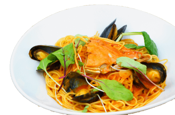渡り蟹とムール貝のパスタ・トマトクリームソース