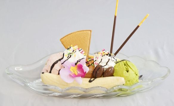 スーパーサンデー(花火の付いたフルーツパフェ)