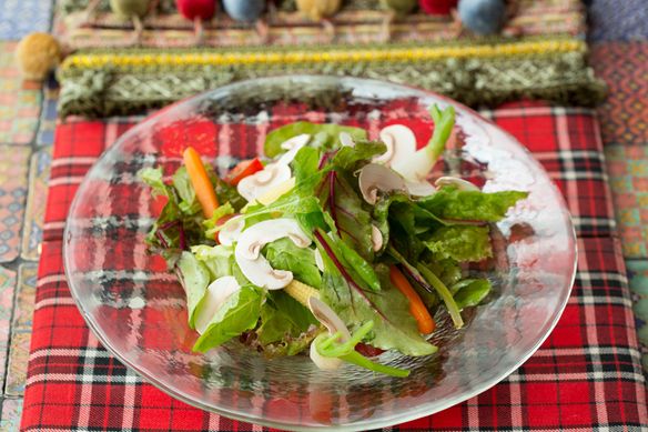 色々な野菜がふんだんに盛られたグリーンサラダです。