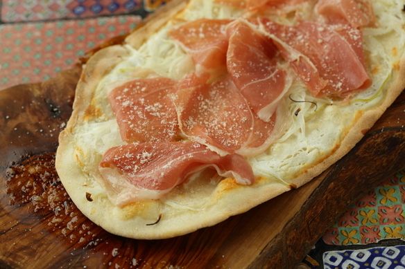 タルトフランベとは、小麦粉を練った生地に具をのせ、オーブンでパリパリに焼き上げたアルザス地方の郷土料理です。