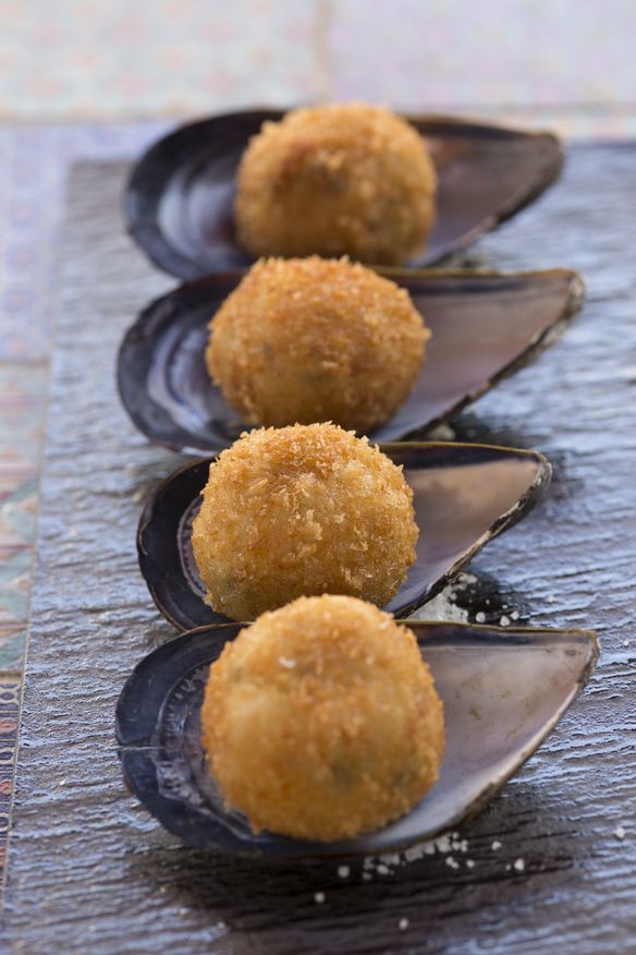 ムール貝から出るなんとも言えない旨味たっぷりのエキスが入ったクリーミーなコロッケです。