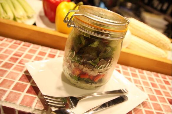 トマト/サニーレタス/グリーンカール/ベビーリーフ/ほうれん草/マッシュルーム/ブラックオリーブ/ ドレッシング:バジルドレッシング