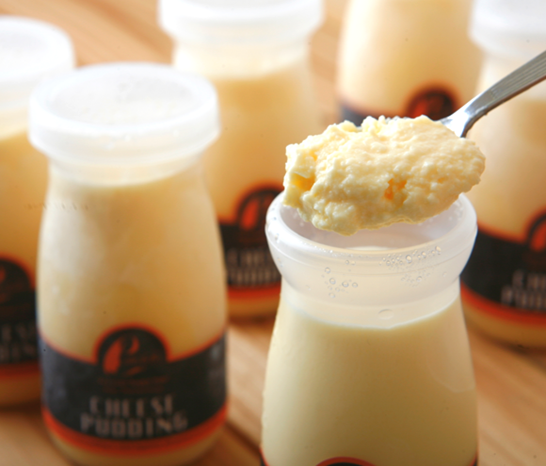 チーズと牛乳の美味しさをバランスよく味わって頂くために3:7の割合でブレンドし可愛いミルクボトルにつめました。プリンの滑らかさとお口の中でとろける食感をぜひお試しください。