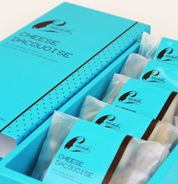 こんなチーズケーキ食べた事がない。食べればわかる濃厚さスプーンやフォークも必要なし。ドーナッツやサンドウイッチのように手軽につまんでお召しあり下さい。プレーン・ショコラ・抹茶・レモン・ブルーベリー・さくらんぼ・白桃・マンゴーの8個