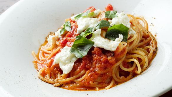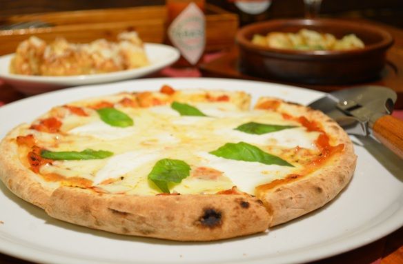 水牛モッツアレラ、トマトソースにバジルのシンプルなピザ