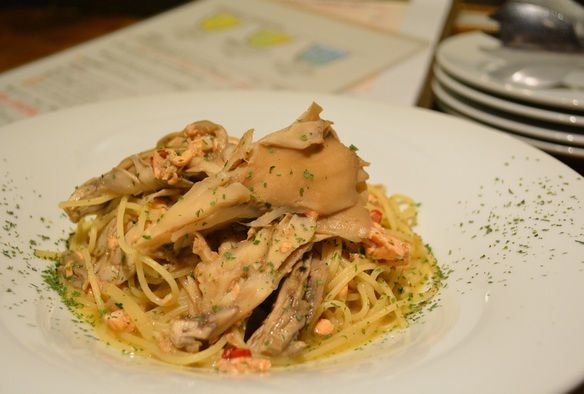 旬の銀鮭をレモンバター風味のオイル系パスタに。 レモンのほんのり酸味が鮭と舞茸の旨味を引き立てます。