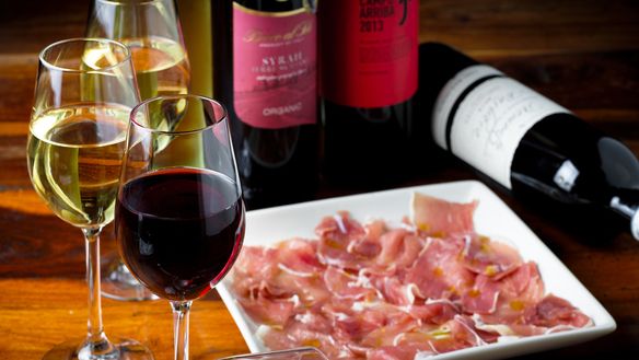 イタリア産のビオワイン 赤:サンジョベーゼ100% 白:トレッビアーノ100% デキャンタ各2200円(税別)
