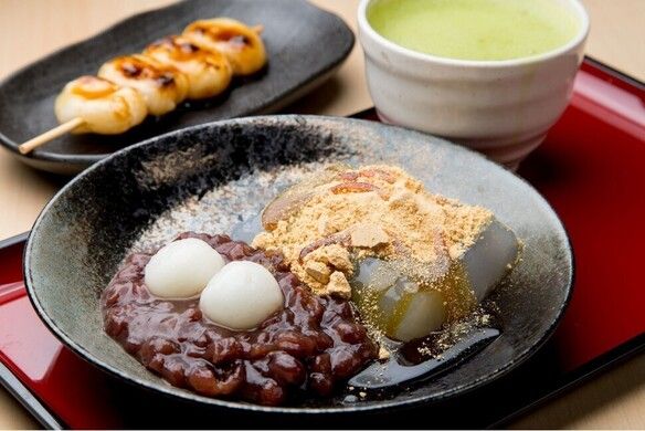手作りのわらび餅です! ぷるぷるモチモチで大人気です! テイクアウトもできます!