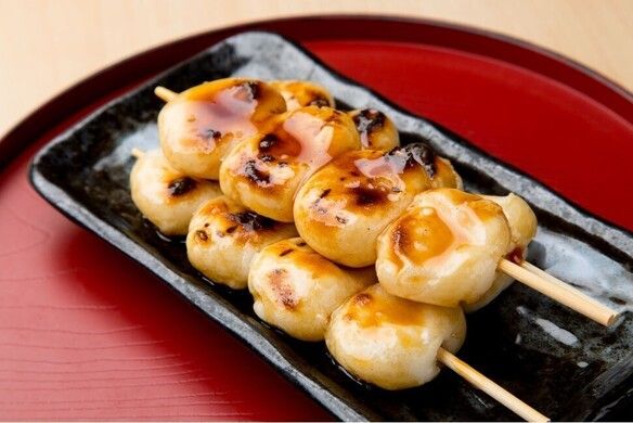 甘すぎないタレが特長のとっても美味しいみたらし団子です。 焼きたてをご提供いたします。