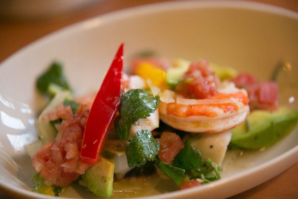 ライムとシラントロが爽やかな魚介のマリネ。