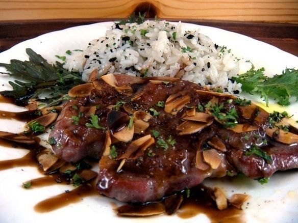 特製フルーツソースとバルサミコがイベリコ豚のローストと相性抜群。 付合せはオリジナルのオリーブごはん。 女性に大人気の一品。