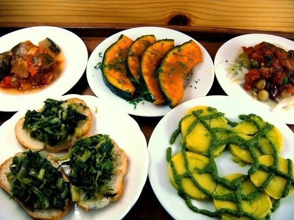 お野菜をメインにしたアンティパスト・ミスト。 一皿で10種類ほどの野菜が食べられます。 事前にご予約頂くと、お待たせせずにご提供できます。