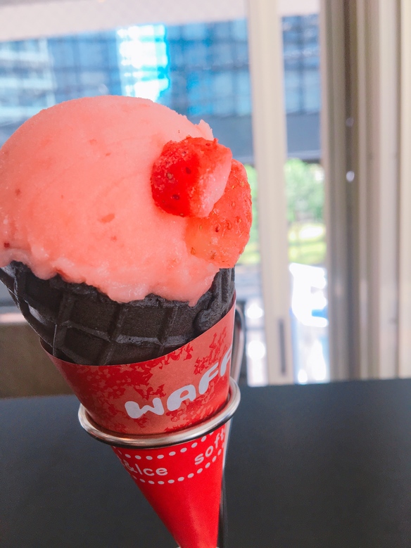 ひんやりイチゴシャーベットを乗せちゃいました!!