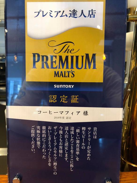 お店で出している「プレミアムモルツ〜香るエール〜」ですが、先日サントリーさんから達人の店として認定を受けました!!