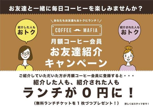 2月19日(月)よりcoffee mafiaでは「お友達紹介キャンペーン」を開始しました!!