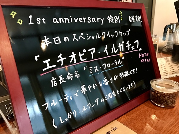 1st anniversary企画、本日のスペシャルティコーヒーは『エチオピア・イルガチェフ』をご用意しております!