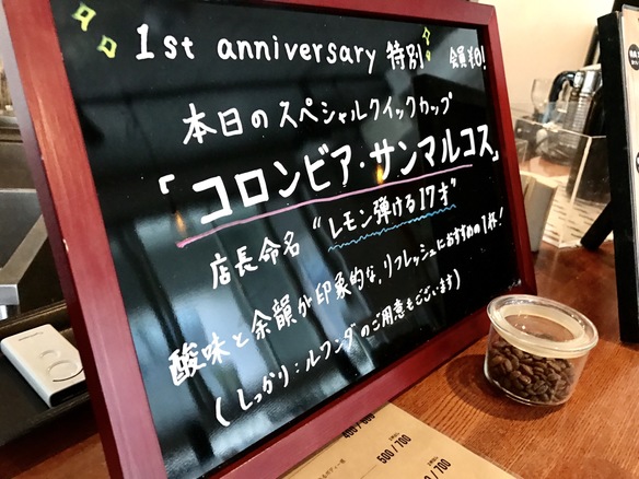 1st anniversary企画、本日のスペシャルティコーヒーは『コロンビア・サンマルコス』をご用意しております!
