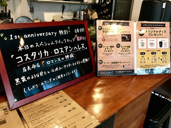 1st anniversary企画、本日最終日のスペシャルティコーヒーは『コスタリカ・ロスアンヘレス』をご用意しております!