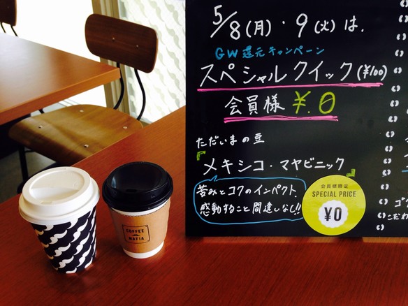 さて、coffee mafiaでは本日と明日の2日間、ゴールデンウィーク還元キャンペーンを実施しております。