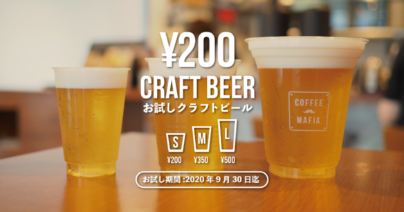 ・クラフトビール:Sサイズ200円(税込)、Mサイズ350円(税込)、Lサイズ500円(税込)