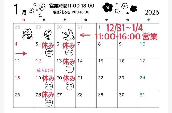 2026年も美味しいお菓子をお届けできるよう、スタッフ一同頑張ってまいりますので、どうぞよろしくお願いいたします。