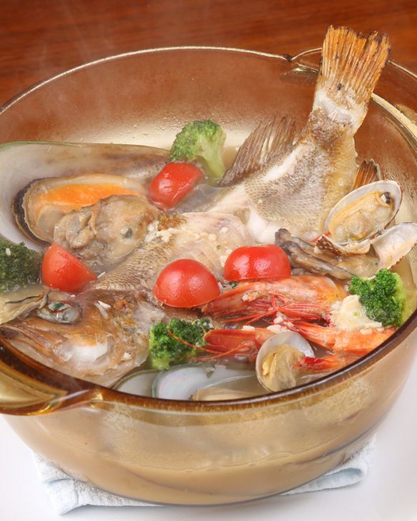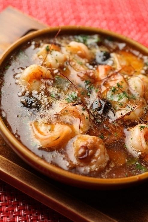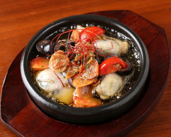 ぷりぷりの海老とマッシュルームをニンニクや唐辛子を入れたオリーブオイルでじっくり煮込んだアヒージョ。旨みたっぷりのオイルにパンを浸していただけば、ワインも進みます。牡蠣を使ったアヒージョもあります。