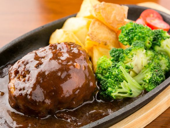 良質な牛肉を100%使ったハンバーグは、肉汁が溢れるジューシーな味わい。赤ワインをじっくり煮込んだ特製ソースでいただきます。「Spiralコース」の中にも入っている人気のメニューです。