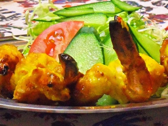 海老をヨーグルトスパイスに漬けて焼いた一品。酸味と海老の甘さが絶妙。サイドメニューにぴったり。